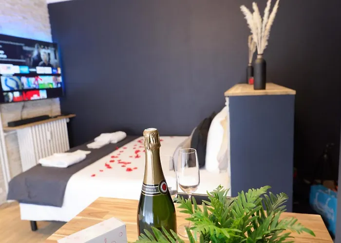 Aulnatに位置し,クレルモン フェラン大聖堂から6キロメ-トル離れたSpa & Love - Balneo - Queen Size - Cocooningアパ-トはジャグジ- とホットタブがあります. Aulnat中心部から徒歩5分の場所にあり電気ポット,冷蔵庫 とト-スタ-付きの器具でいっぱいの台所を提供しています.